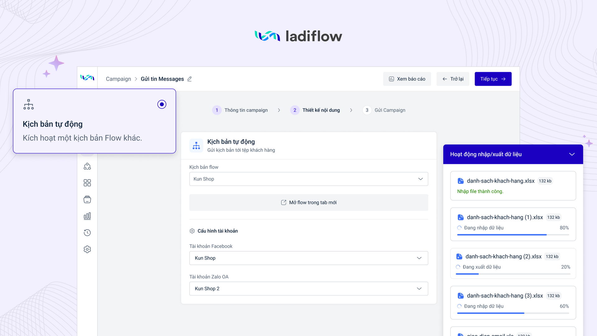 Chúng tôi đã mở lại tính năng gửi kịch bản tự động khi tạo Campaign. Bạn có thể gửi một flow cho 1 tập khách hàng xem chi tiết thao tác.