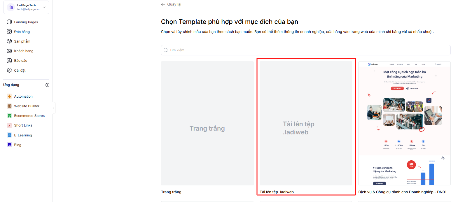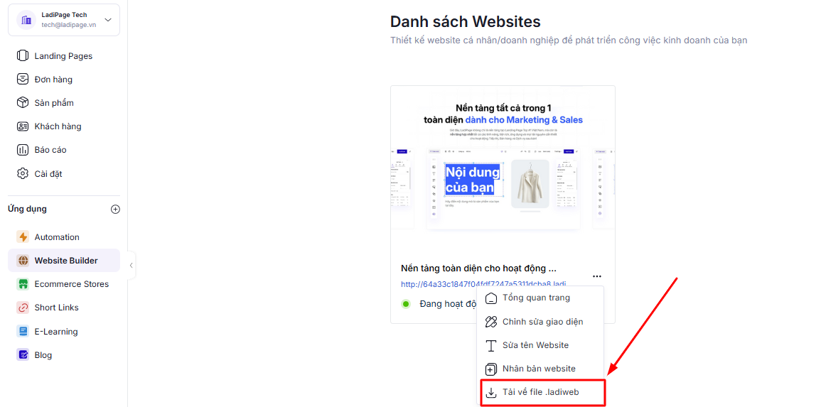 3. Quản lý tập tin được tách riêng cho Builder LadiPage, Website và Blog.