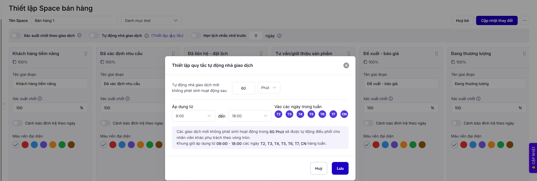 Hệ thống đã bổ sung tính năng tự động nhả giao dịch (deal) khi không phát sinh bất kỳ hoạt động nào trong một khoảng thời gian được cấu hình trước.